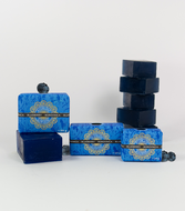 Minerale pigmenten geven de zeep een mooie blauwe tint, terwijl de rijke, zijdezachte schuimlaag zorgt voor een luxe gevoel op de huid.