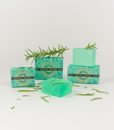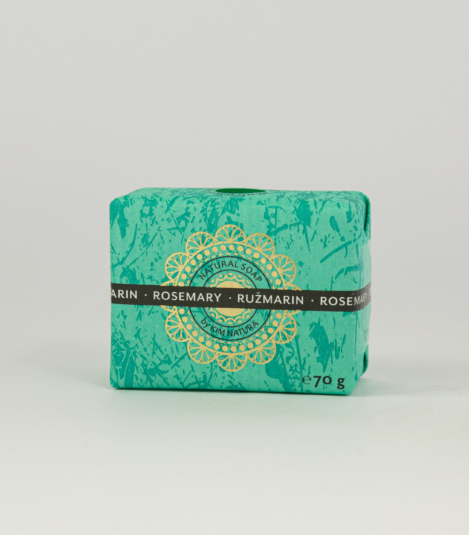 De Rozemarijn Zeep is een hoogwaardige, handgemaakte zeep op basis van plantaardige glycerine en verrijkt met etherische rozemarijnolie, bekend om haar zuiverende, verfrissende en stimulerende eigenschappen.